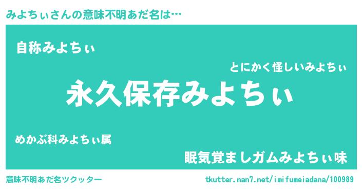 | 男性向けラノベタイトル風あだ名 | 『みよちぃという概念が存在しない退屈な世界 』 |
