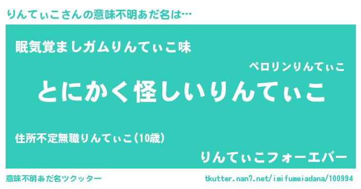 | 男性向けラノベタイトル風あだ名 | 『りんてぃこの嫁は女の子じゃないと思った?』 |