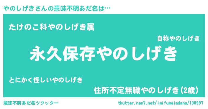 | 胡散臭い通販商品みたいなあだ名 | 『絶対に幸福をもたらす水素水…その名も「やのしげき」』 |
