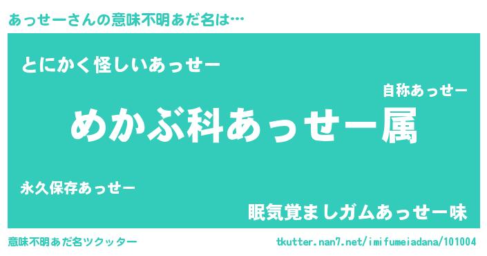 | ヒーロー風カッコイイあだ名 | 『暗黒騎士アッ』『正義の使者あっせー』 |
