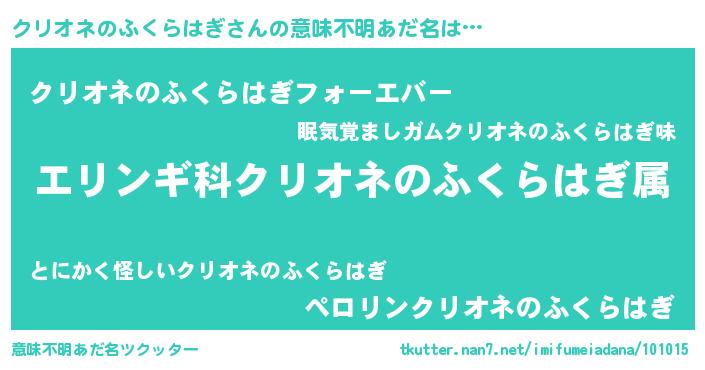 | 男性向けラノベタイトル風あだ名 | 『クリオネノフクラハギスレイヤー』 |