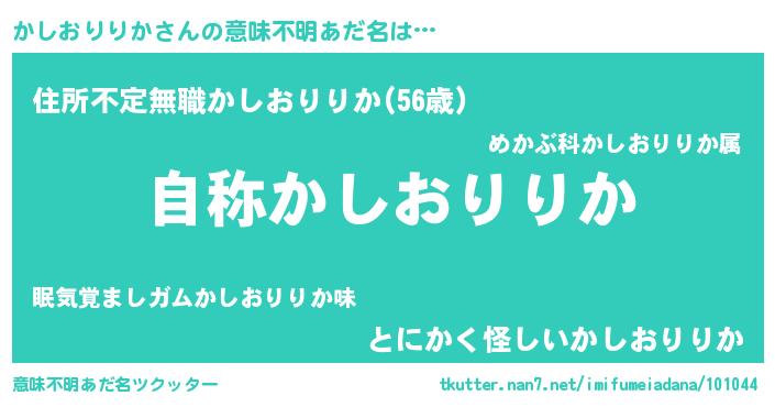 | 欧米人風あだ名 | 『ケンブリッジかしおりりか』 |