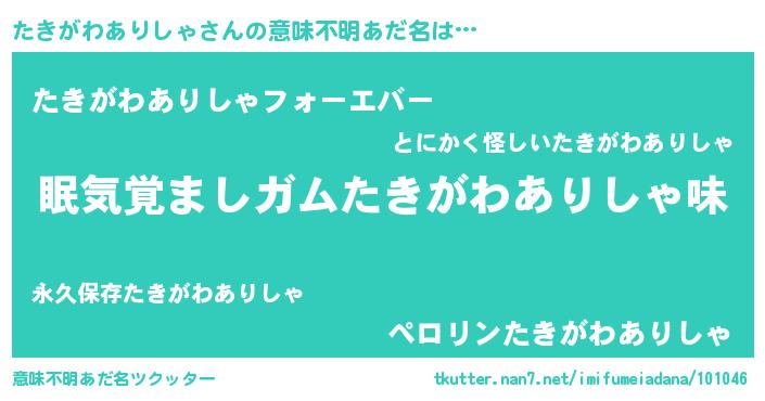 | 自動車の名前っぽいあだ名 | 『タンR』『タクア』『タキティマ』 |