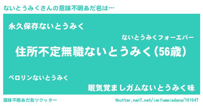 | 男性向けラノベタイトル風あだ名 | 『この素晴らしい世界にないとうみくを!』 |