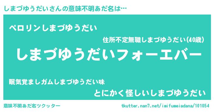| 欧米人風あだ名 | 『しまづゆうだい・ステッグマイヤー』 |
