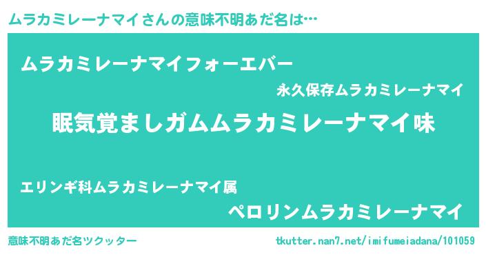 | 女子向けラノベタイトル風あだ名 | 『ムラカミレーナマイ恋絵巻』 |