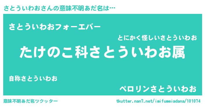 | 料理風あだ名 | 『さとういわおごはん』 |