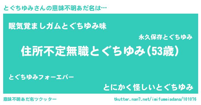 | 男性向けラノベタイトル風あだ名 | 『この素晴らしい世界にとぐちゆみを!』 |