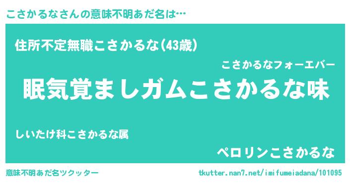 | 女子向けラノベタイトル風あだ名 | 『死神こさかるなの再婚』 |