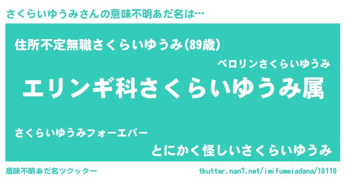| 男性向けラノベタイトル風あだ名 | 『サクライユウミスレイヤー』 |