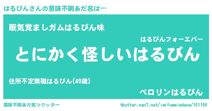 | 女子向けラノベタイトル風あだ名 | 『はるびんは平凡を望む』 |