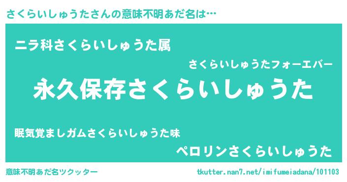 | ヘコむあだ名 | 『さくらいしゅうた(笑)』『さくにゅー』 |