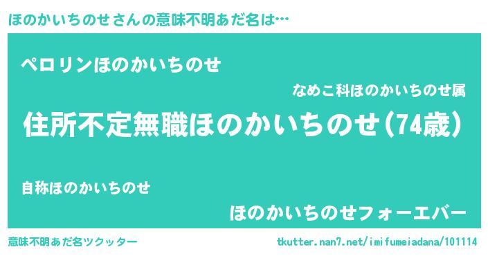 | 料理風あだ名 | 『ほのかいちのせのカルパッチョ風』 |