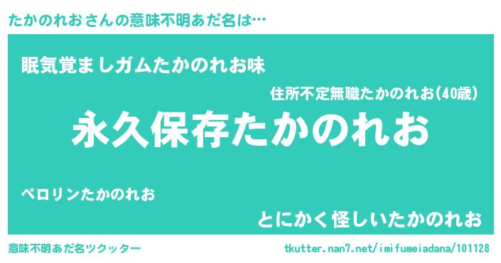 | 胡散臭い通販商品みたいなあだ名 | 『絶対に幸福をもたらす健康食品…その名も「たかのれお」』 |
