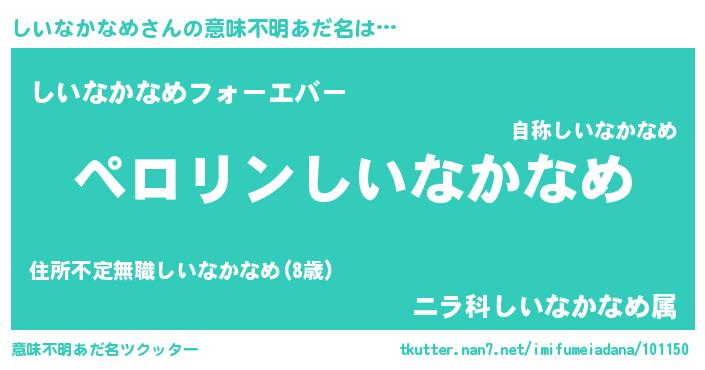 | 肩書あだ名 | 『しいなかなめ社長』『しいなかなめ少将』 |