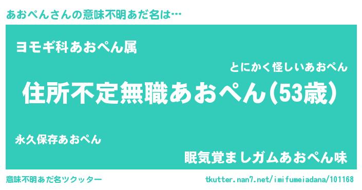 | 欧米人風あだ名 | 『ダレノガレあおぺん』 |