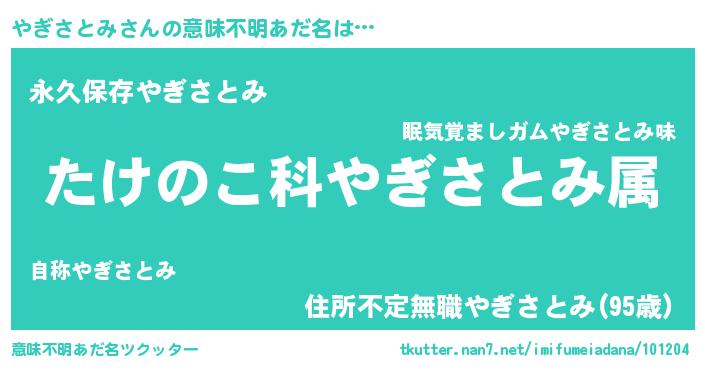 | 欧米人風あだ名 | 『やぎさとみ・ステッグマイヤー』 |