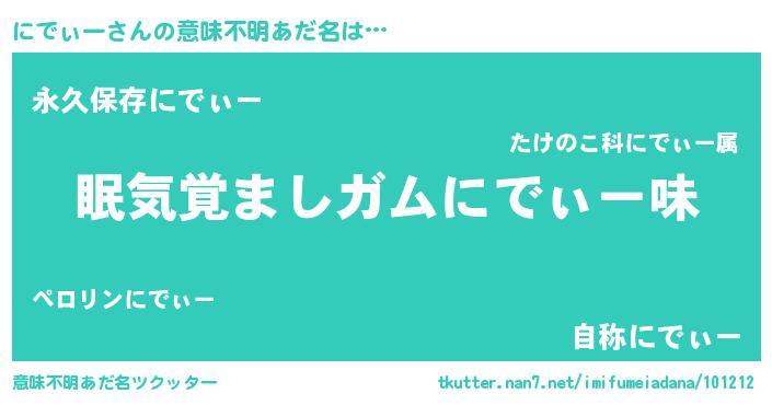 | ヘコむあだ名 | 『にでぃー(笑)』『にでっふぃ~』 |