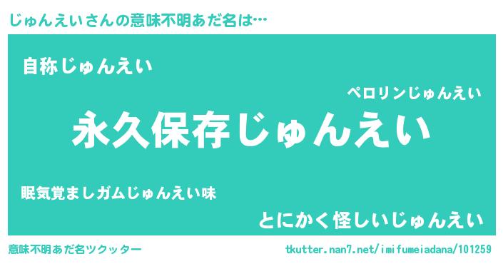 | 女子向けラノベタイトル風あだ名 | 『異世界で失敗しない100のじゅんえい』 |
