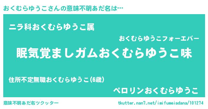 | 男性向けラノベタイトル風あだ名 | 『ノーゲーム・ノーオクムラユウコ』 |