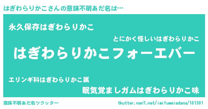 | ヒーロー風カッコイイあだ名 | 『ウルトラはぎわらりかこマン』 |