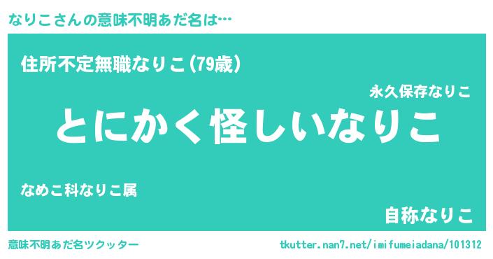 | 胡散臭い通販商品みたいなあだ名 | 『信頼と実績のサプリメント…その名も「なりこ」』 |