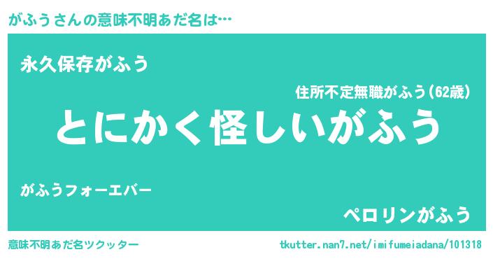 | ヘコむあだ名 | 『がふっ子』『がふう(笑)』 |