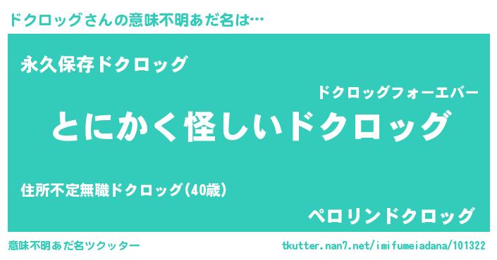 | 男性向けラノベタイトル風あだ名 | 『ドクロッグの嫁は女の子じゃないと思った?』 |