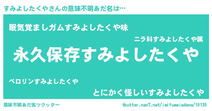 | 胡散臭い通販商品みたいなあだ名 | 『絶対に幸福をもたらす健康食品…その名も「すみよしたくや」』 |