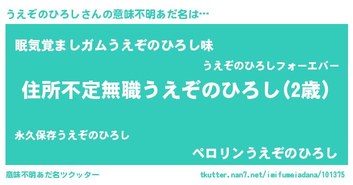 | 男性向けラノベタイトル風あだ名 | 『この素晴らしい世界にうえぞのひろしを!』 |