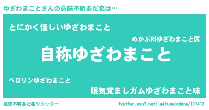 | ポケモン風あだ名 | 『ユザセウス』『ヒユザワマコト』 |
