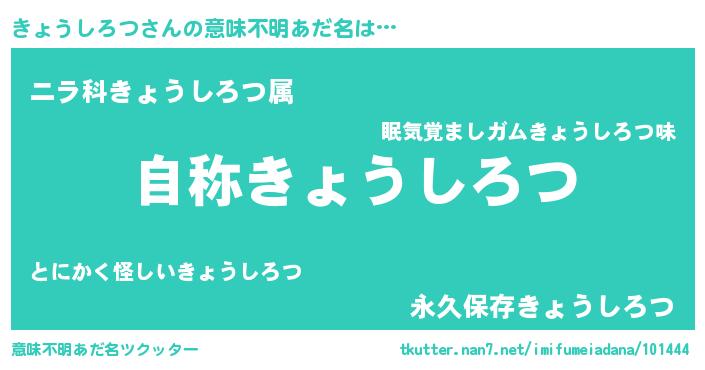 | 男性向けラノベタイトル風あだ名 | 『Re:きょうしろつから始める異世界生活』 |