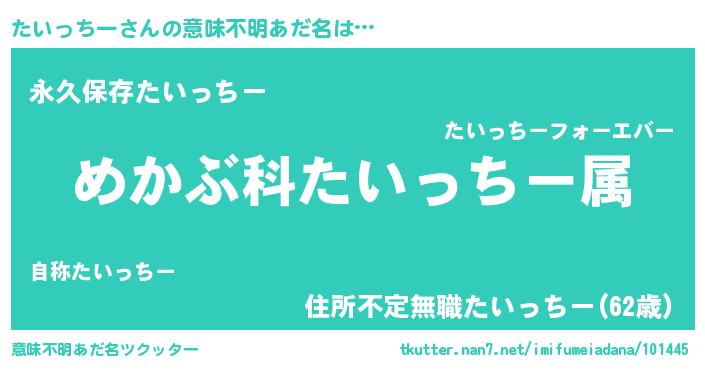 | 胡散臭い通販商品みたいなあだ名 | 『絶対に幸福をもたらす水素水…その名も「たいっちー」』 |