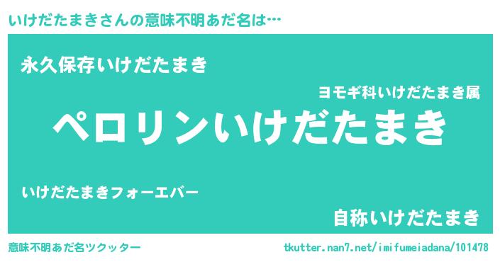 | ヒーロー風カッコイイあだ名 | 『スーパーイケダタマキ』『黄金騎士イケ』 |