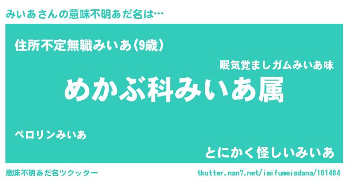 | 男性向けラノベタイトル風あだ名 | 『ミイアスレイヤー』『魔弾の王とみいあ』 |