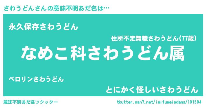 | 胡散臭い通販商品みたいなあだ名 | 『来世でも幸せになれる水素水…その名も「さわうどん」』 |