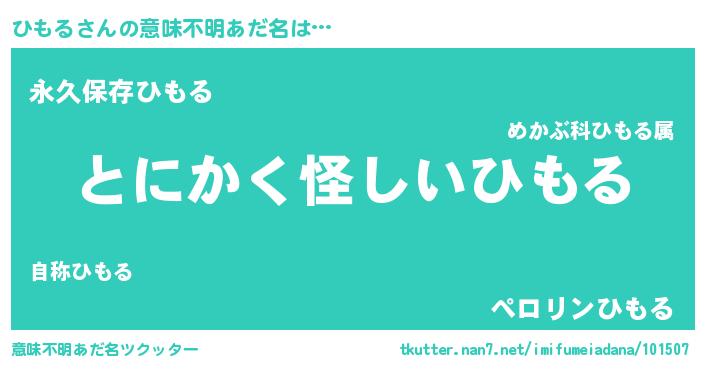 | 女子向けラノベタイトル風あだ名 | 『ひもるの卵を拾いまして』 |