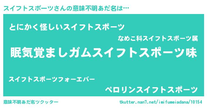 | 男性向けラノベタイトル風あだ名 | 『うちのスイフトスポーツが世界を掌握している!』 |