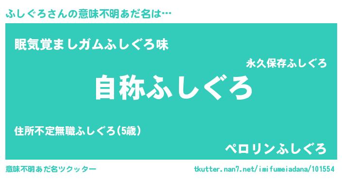 | 男性向けラノベタイトル風あだ名 | 『Re:ふしぐろから始める異世界生活』 |