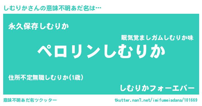 | 男性向けラノベタイトル風あだ名 | 『しむりかの憂鬱』 |