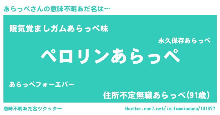 | 男性向けラノベタイトル風あだ名 | 『アラッペアートオンライン』 |