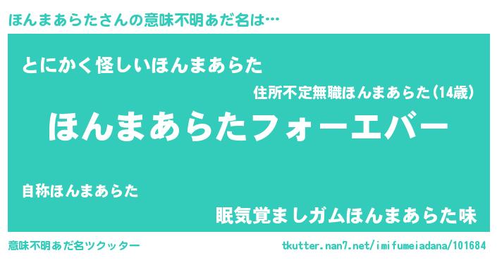 | 欧米人風あだ名 | 『ほんまあらた・ステッグマイヤー』 |