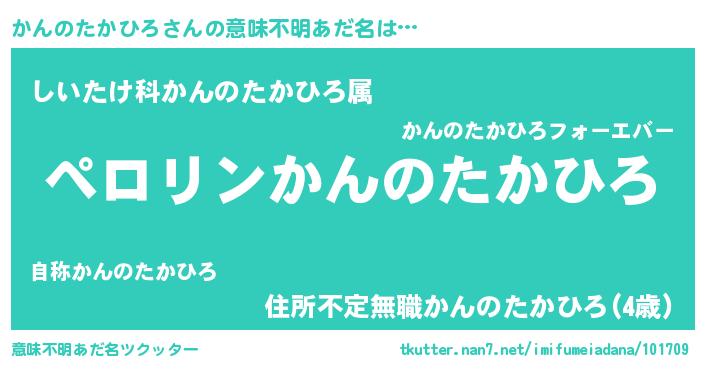 | 男性向けラノベタイトル風あだ名 | 『カンノタカヒロアートオンライン』 |