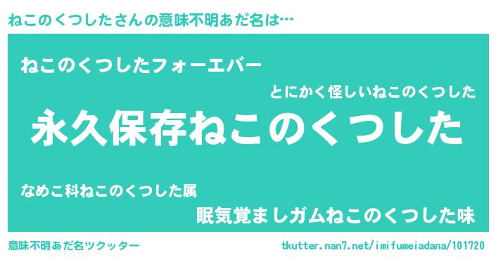| 男性向けラノベタイトル風あだ名 | 『ねこのくつしたという概念が存在しない退屈な世界 』 |