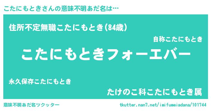 | 男性向けラノベタイトル風あだ名 | 『やはりこたにもときの青春ラブコメはまちがっている 』 |