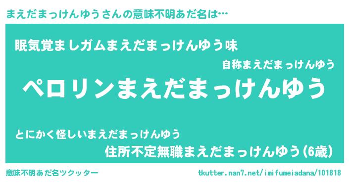 | 男性向けラノベタイトル風あだ名 | 『まえだまっけんゆうの憂鬱』 |