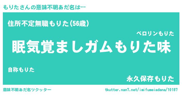 | ヘコむあだ名 | 『もりた(遠い目)』『もりにゅー』 |