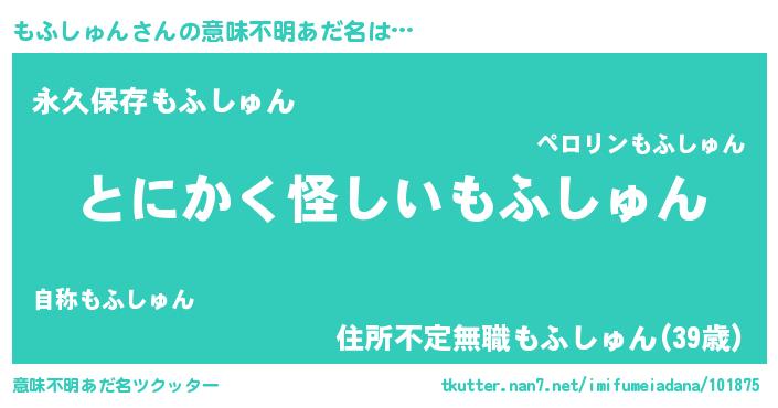 | 女子向けラノベタイトル風あだ名 | 『もふしゅん様がみてる』 |
