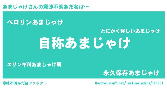 | 男性向けラノベタイトル風あだ名 | 『Re:あまじゃけから始める異世界生活』 |
