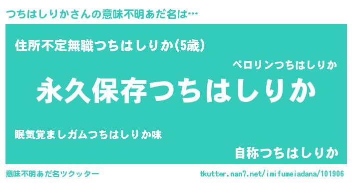 | 胡散臭い通販商品みたいなあだ名 | 『絶対に幸福をもたらす水素水…その名も「つちはしりか」』 |